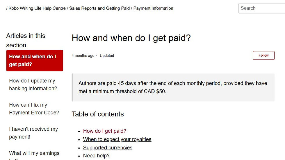 Also, I might delist my books on Kobo as well. They also have a threshold, of $50 this time. I only got one paid sale on Kobo, but I never got the money because it's way below the threshold.